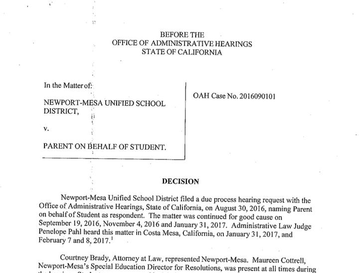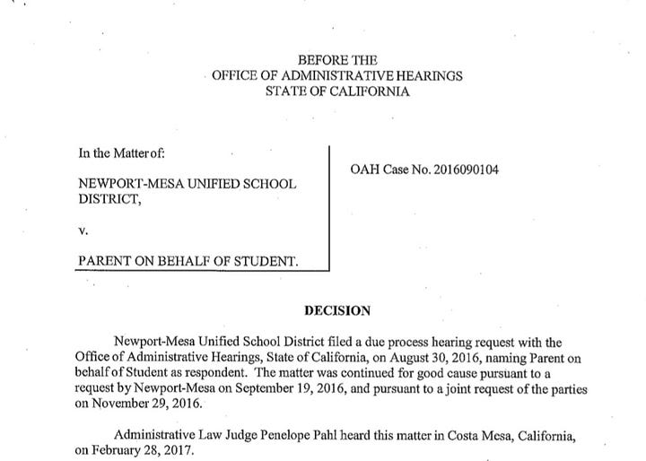 In 2016, I filed for due process through the Office of Administrative Hearings. In 2017, I won two OAH decisions. NMUSD was found to have violated our civil rights, denied FAPE, and facilitated restraining order violations. For years after NMUSD fought subpoenas.