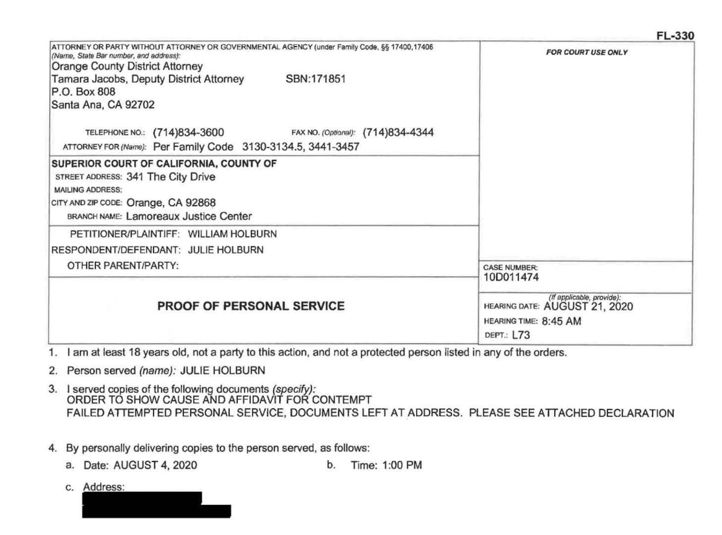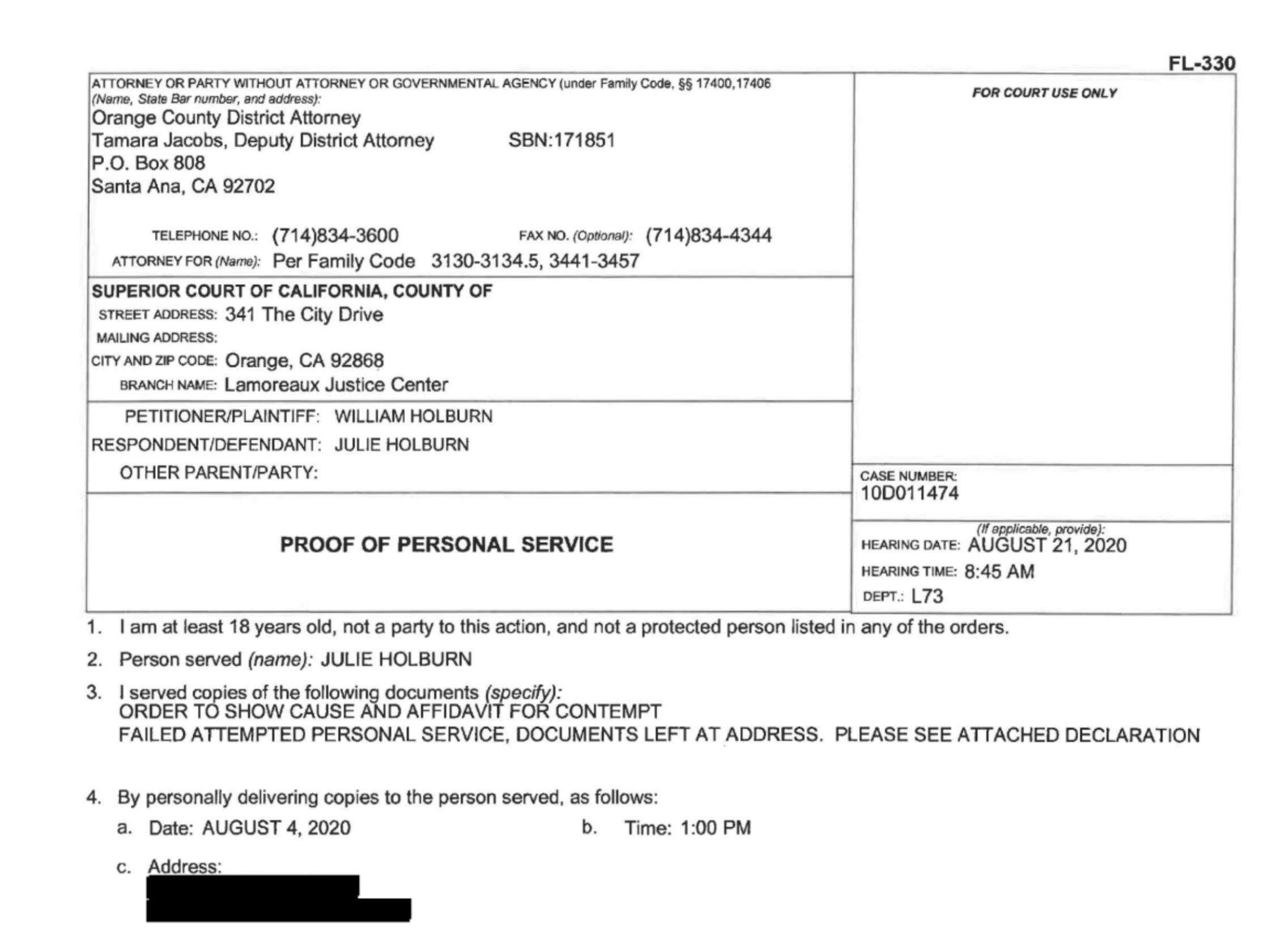 Later, I learned it was OCDA Investigator Joe Faria, working with DDA Tamara Jacobs and NBPD Det. Michael Fletcher, attempting to serve court paperwork on behalf of my ex—documents already rejected by the court. We were in the Safe at Home program, and his conduct was not only traumatic—it was illegal.