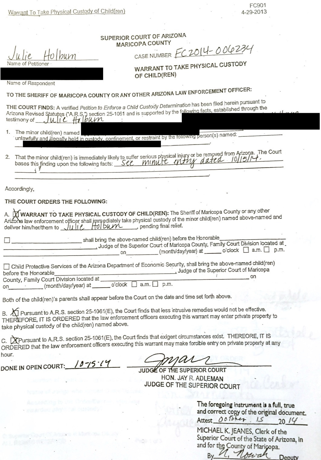 In 2010, I filed for divorce. By 2014, my ex had abducted our children across state lines multiple times. I secured emergency custody orders and drove from California to Arizona to enforce them—alone. Newport Beach Police refused to help. Eventually, Judge Sarmiento granted me sole legal and physical custody and issued a domestic violence restraining order in 2015.