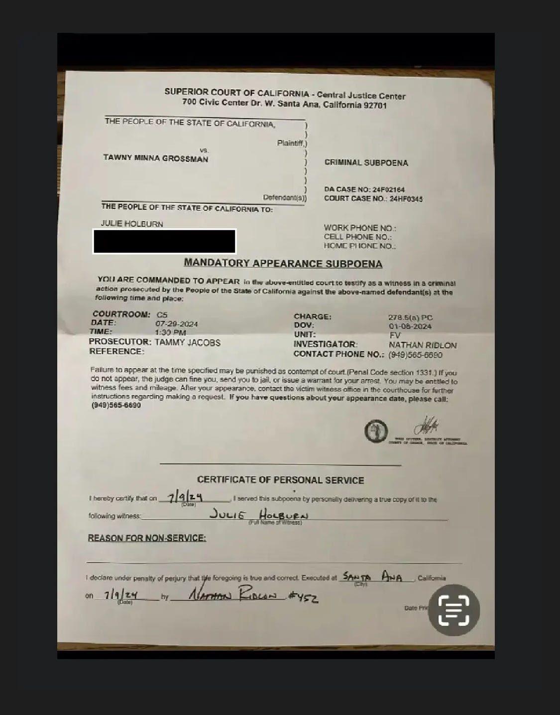 In 2024, I was subpoenaed in the Tawny Minna-Grossman case—a case I’d reported on for over a year. It was a clear attempt to suppress my journalism. Thanks to the First Amendment Coalition and Jassy Vick Carolan LLP, the subpoena was rescinded.